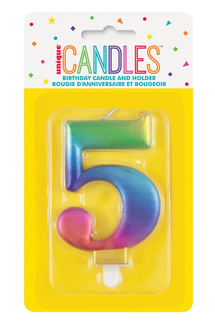 NUMERAL CANDLE “5” – GOLD, RAINBOW OR SILVER